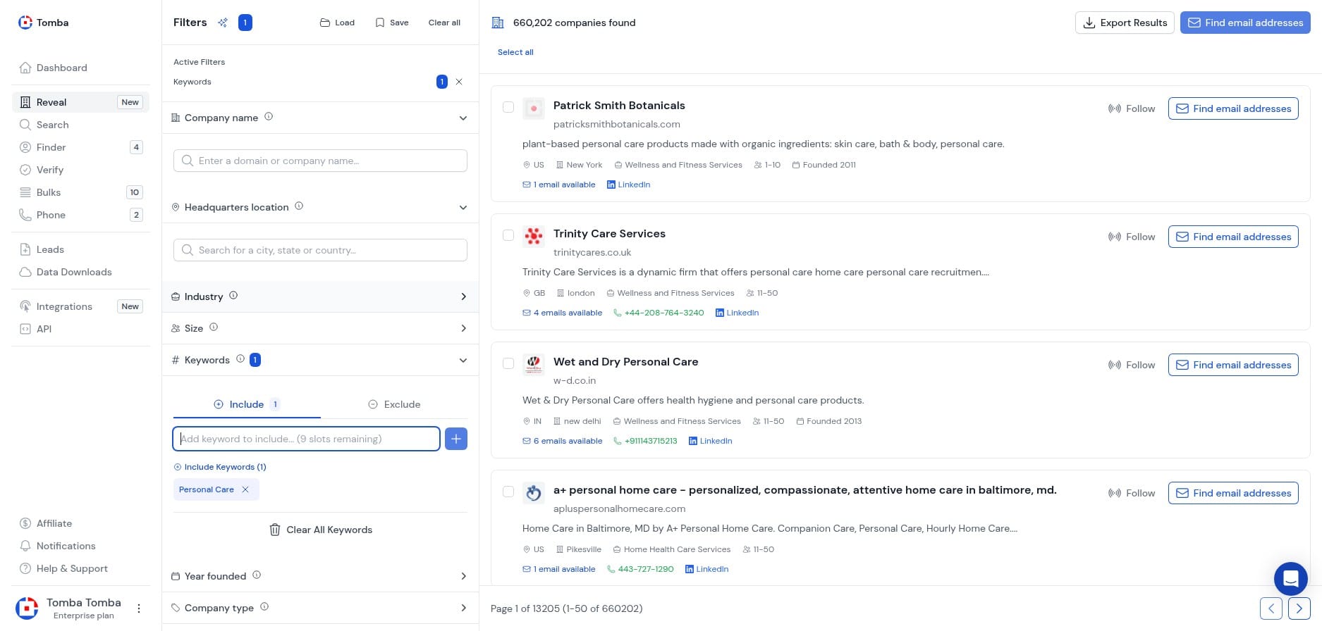 - Start with Tomba Reveal: Quickly uncover verified contacts for companies of interest.